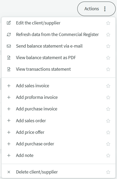 This list also includes data about reporting persons (marked as “Reporting person” and “Private person”). Clients and suppliers are not strictly divided into clients and suppliers, as the same entity may act as both..