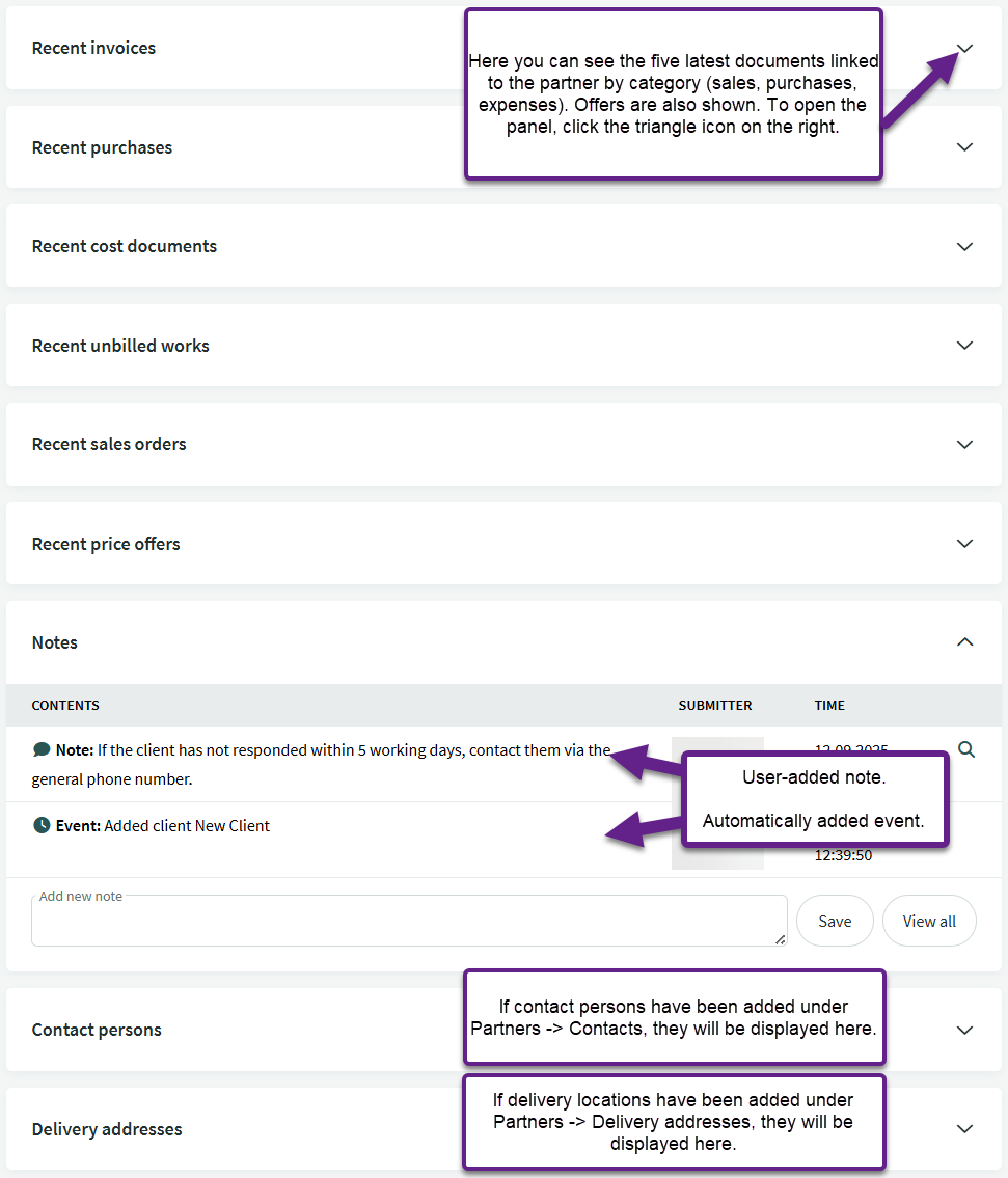.Since a new partner can be added directly from a sales or purchase invoice, as well as from an expense report, there is no requirement to enter them in advance.