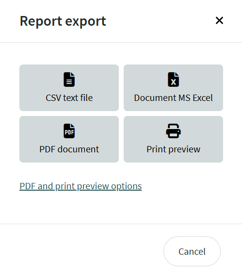 In the window that opens, you can see the available formats for saving the report and also choose to print it.
