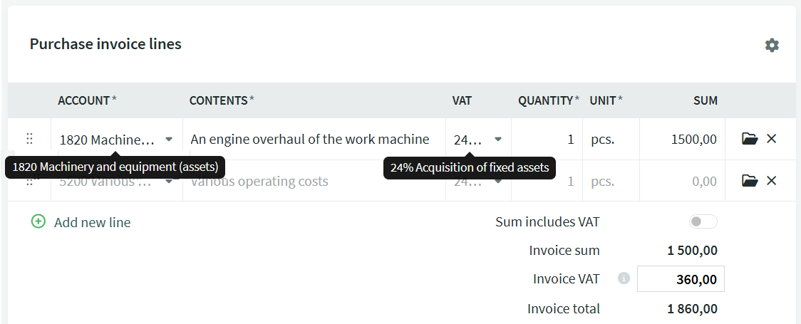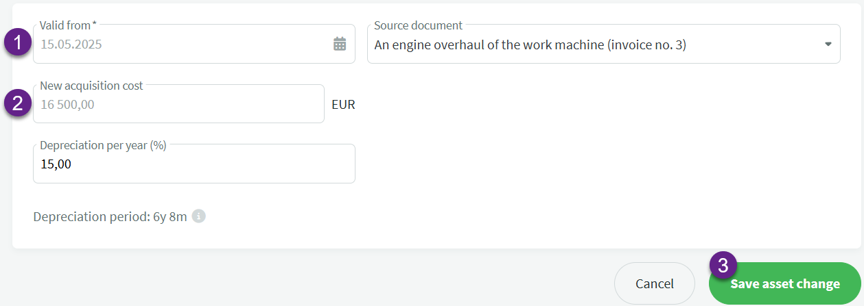, or increase the value of the asset based on improvements made to it (using purchase invoices).According to Estonian financial accounting rules, it is not allowed to increase the value of an asset through revaluation. More detailed information on fixed asset accounting is provided in the Accounting Standards Board guideline (ASBG) 5 Tangible and intangible fixed assets. All guidelines are available on the Ministry of Finance website.