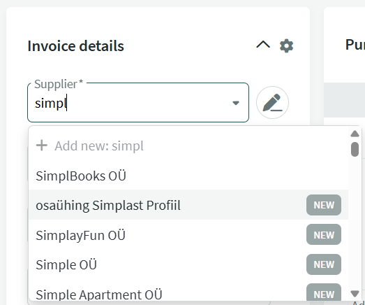 NB! An entry will not be created for the invoice until an opening balance has been entered for at least one account. Also, check the start date for automatic entries (Settings -> Environment settings -> General settings). You can find information about entering opening balances here: Entering initial balances.