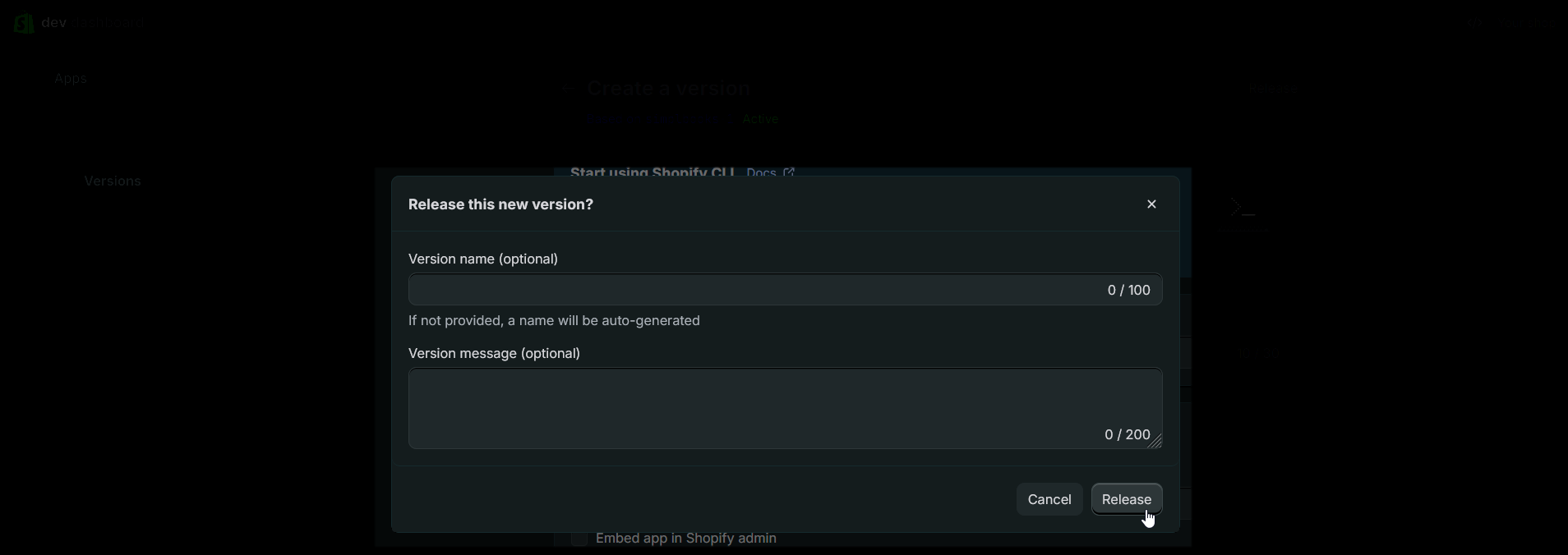 Insert app URL and unselect “Embed app in Shopify admin”.