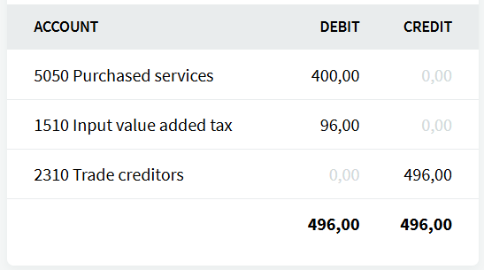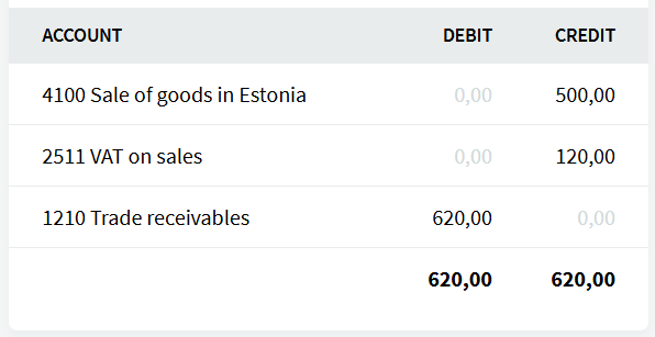 NB! If your company is not registered for VAT (value added tax), you cannot show VAT on sales or purchase invoices, nor you do need to record or declare VAT.