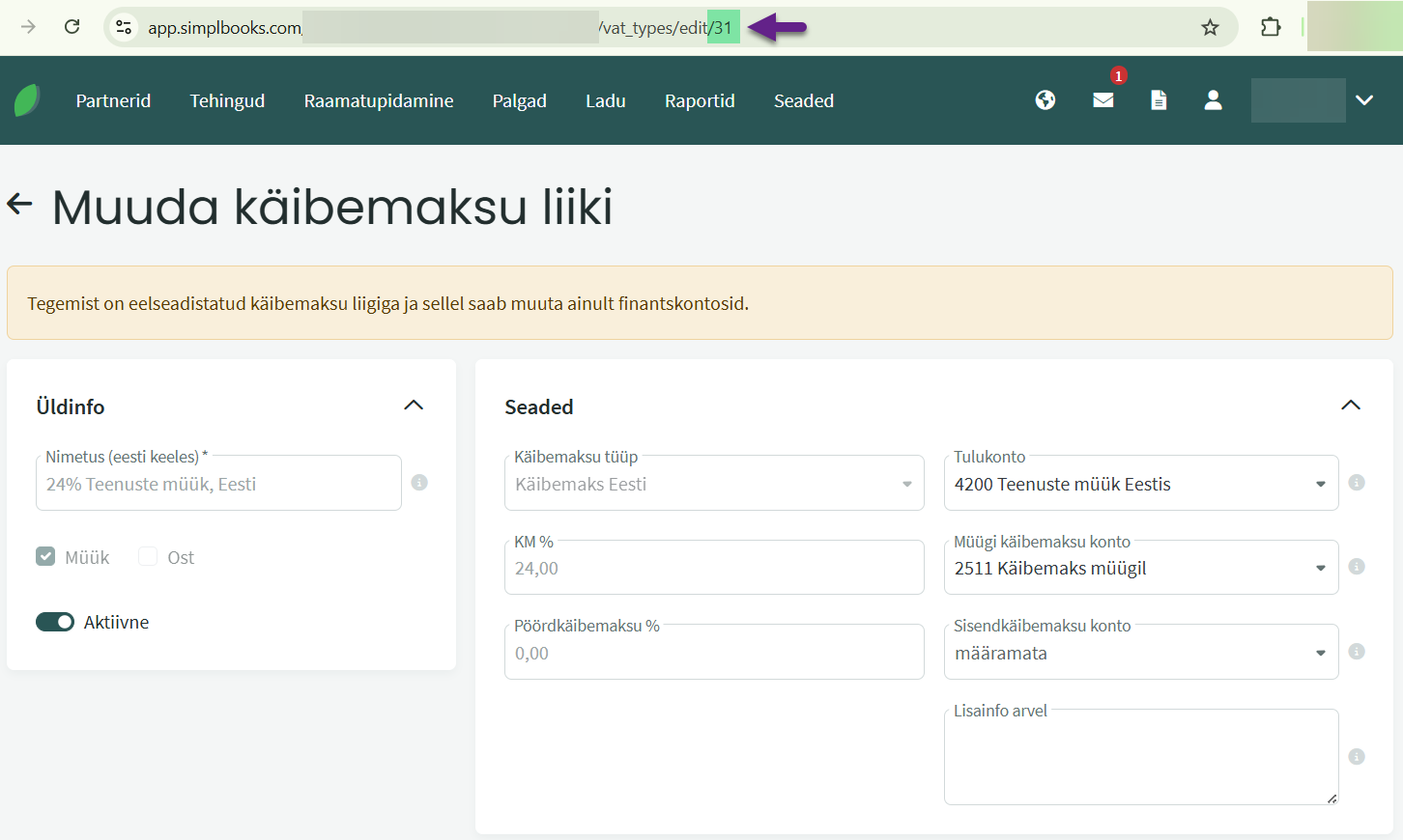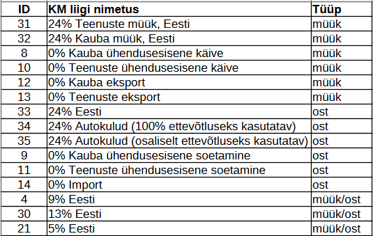 - Käibemaksu liik ostul – märkida tuleb KM liigi ID või KM liigi täpne nimetus