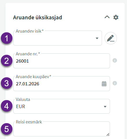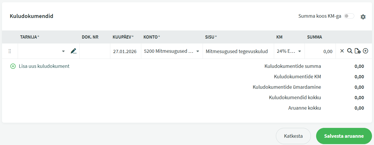 Tehingud -> Kulu- ja lähetusaruanded -> Uus aruanne -> Lähetusaruanne