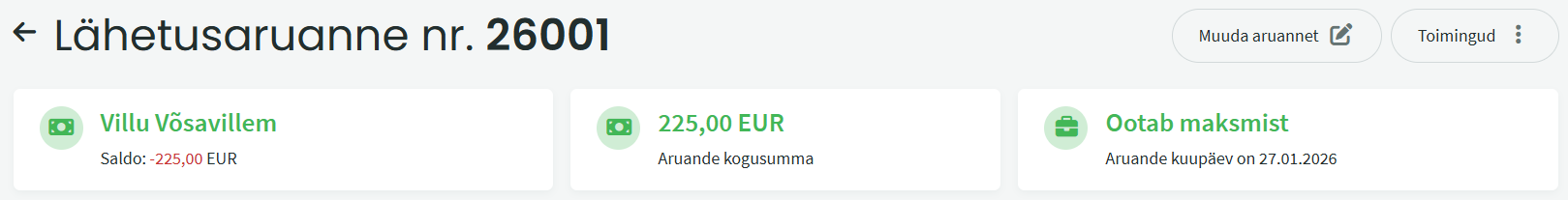 Lähetusaruande leiab Tehingud menüüst Kulu- ja lähetusaruanded alt.