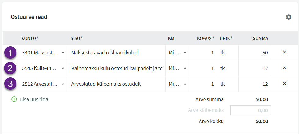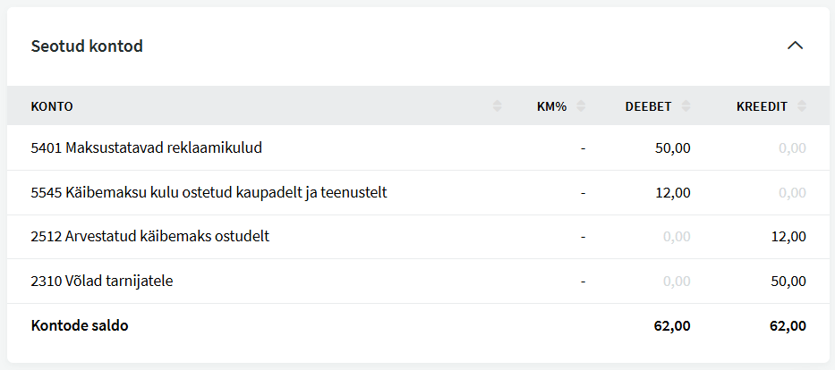 Juhendis on teemat käsitletud teenuste ostmise vaates (kontode nimetused).