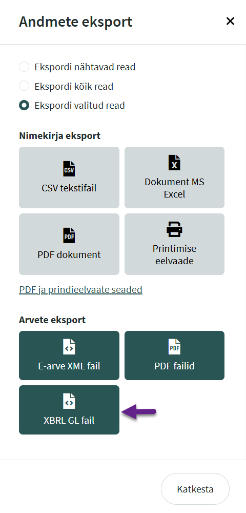 SimplBooksi on võimalik müügi- ja ostuarveid eksportida XBRL GL formaadis. Selle jaoks, et eksportimine nimetatud formaadis oleks võimalik, tuleb see sisse lülitada Seaded -> Keskkonna seaded -> Üldised seaded all.