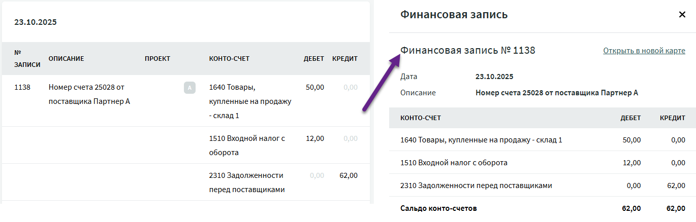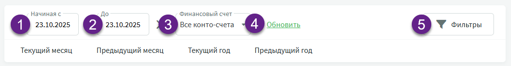 - Финансовый счет — для отображения данных по конкретному конто-счету