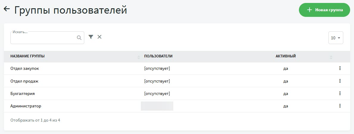 - Отдел закупок — разрешено просматривать, изменять и добавлять только связанные с закупками документы и отчеты; удаление не допускается.