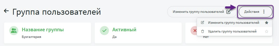 «Настройки» -> «Пользователи» -> кнопка «Действия» -> «Группы пользователей»