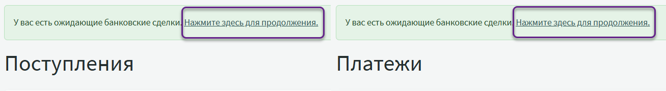 Независимо от того, каким способом вы переходите в просмотр банковских сделок, вам всегда будут показываться одни и те же ожидающие обработки сделки.