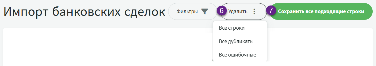 7. «Сохранить все подходящие строки» – эта команда позволяет одним действием сохранить все проверенные корректные строки, без необходимости сохранять каждую сделку отдельно.