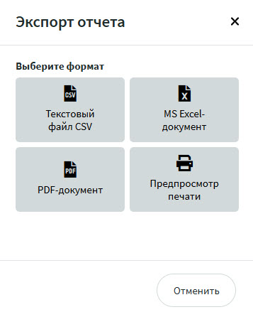 В открывшемся окне вы увидите форматы, в которых можно сохранить отчет.