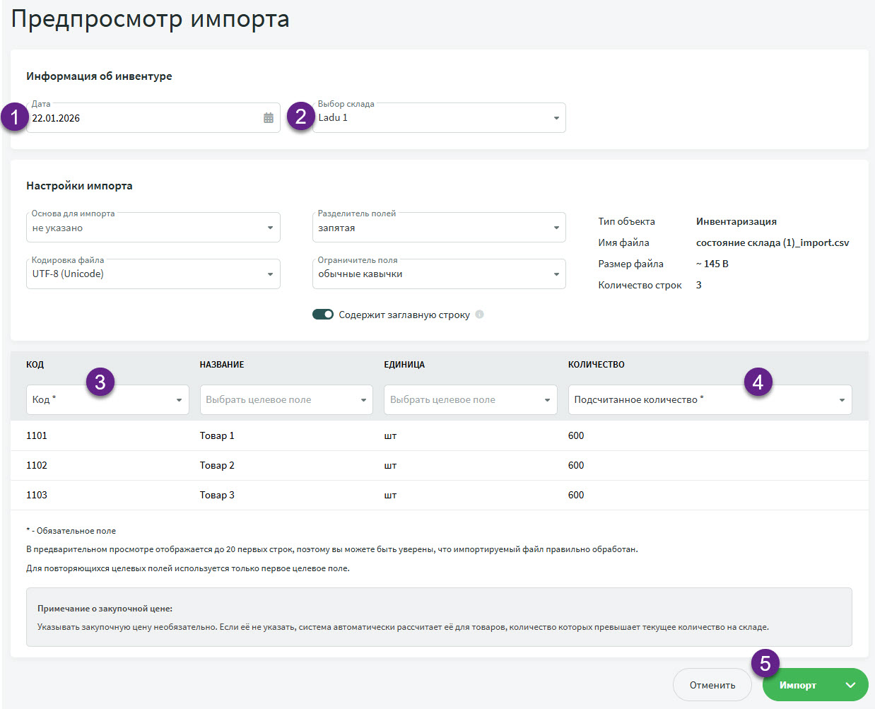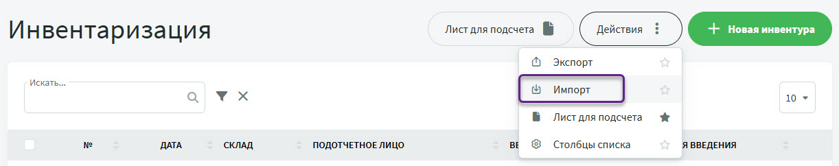 Инвентаризацию можно проводить вручную или импортировать из файла.