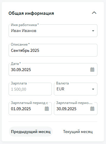 В инструкции мы рассмотрим поэтапное добавление новой заработной платы. В окне добавления новой заработной платы есть пять панелей: