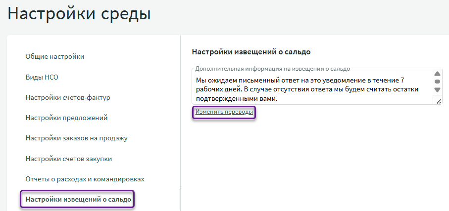 Если извещения отправляются на разных языках, используемых в системе, можно добавить переводы, нажав ссылку «Изменить переводы».