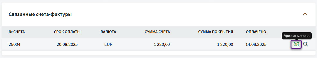Со стороны счета — в разделе «Поступления» нажмите ссылку «Удалить связь».