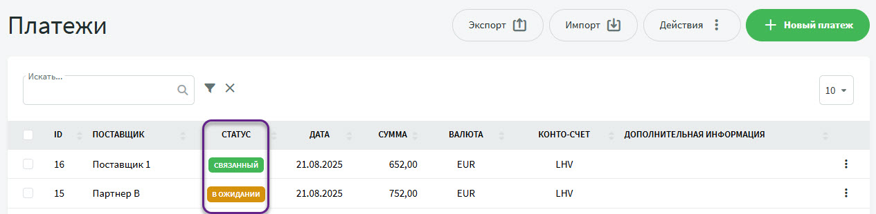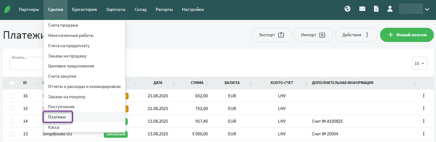 ● Несвязанные платежи можно найти в разделе «Сделки -> Платежи».Данные можно искать и сортировать по всем отображаемым параметрам. Подробнее об использовании поисковых фильтров читайте в инструкции