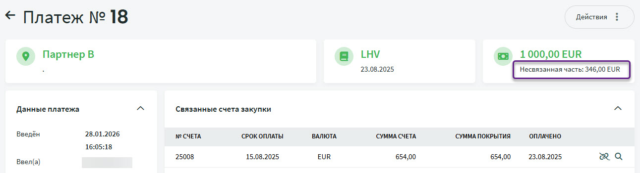 Несвязанные платежи — это платежи, произведенные поставщикам, которые не связаны со счетом покупки. В ресконтро покупок они отражаются как предоплаты.