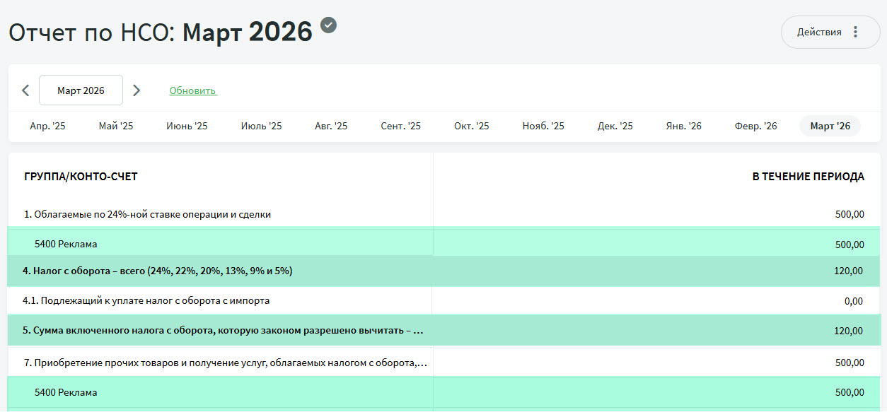 В настройках по умолчанию отдельного вида НСО для этого нет, однако его можно добавить самостоятельно. Также необходимо дополнить настройки рапорта по НСО, чтобы расчеты выполнялись корректно.