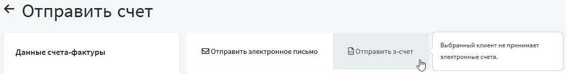 Для отправки счета нажмите кнопку «Отправить э-счет». Счет будет отправлен в портал оператора э-счетов клиента, откуда он будет доставлен в бухгалтерское программное обеспечение клиента.