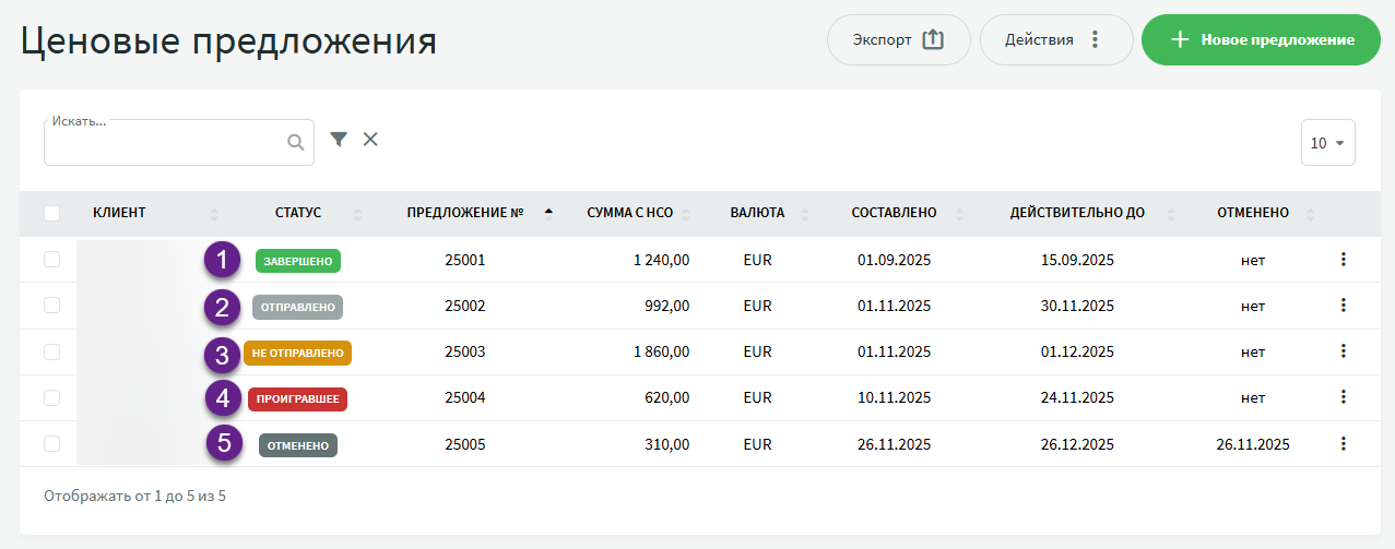 Сделки -> Ценовые предложения -> Новое предложение