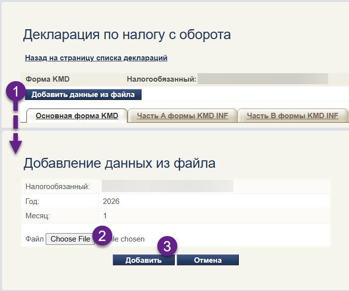Отчет по НСО (KMD) и приложения INF A и INF B можно экспортировать из программы SimplBooks в виде XML-файла и импортировать в Налоговый департамент.