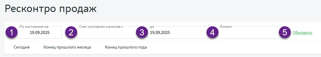 2. Счет составлен, начиная с — дата, начиная с которой система включает в рапорт выставленные счета.