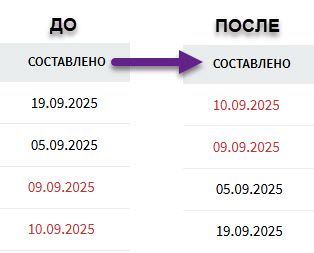 При нажатии на заголовок столбца можно изменить порядок сортировки данных в этом столбце. Сортировку можно менять по следующим столбцам: клиент, дата составления, срок оплаты.