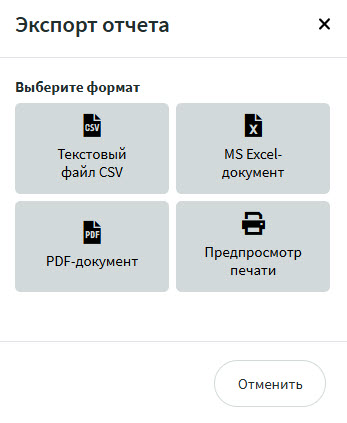 В открывшемся окне система предлагает различные форматы, в которых можно сохранить отчет.