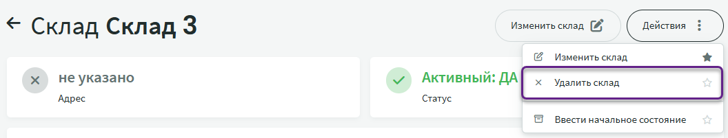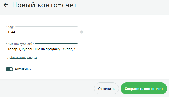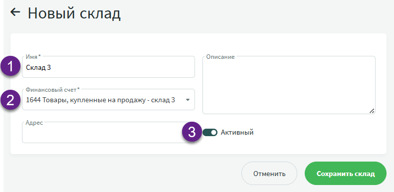 Перед добавлением нового склада необходимо проверить, существует ли подходящий финансовый счет. Если складов несколько, у каждого склада должен быть свой отдельный финансовый счет (балансовый счет, на котором ведется денежный учет складских движений).