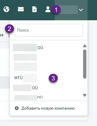 ● Если вы забыли пароль, подробную информацию о его восстановлении вы найдёте в инструкции «Забыли пароль?». ● Если вы добавлены пользователем в несколько компаний с одним и тем же адресом электронной почты, вы можете переключаться между этими компаниями без выхода из системы. Наведя курсор мыши на название компании в правом верхнем углу (1), вы увидите и другие компании, связанные с вашим пользователем (3). Если компаний больше пяти, появятся также поле поиска (2) и полоса прокрутки. ● Из программы можно выйти, наведя курсор на иконку человека и нажав кнопку «Выйти».При возникновении дополнительных вопросов пишите нам на support@simplbooks.ee