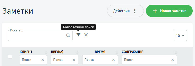 Заметки можно искать с помощью фильтров. Подробную информацию об использовании фильтров можно найти здесь: «Использование фильтров списка».