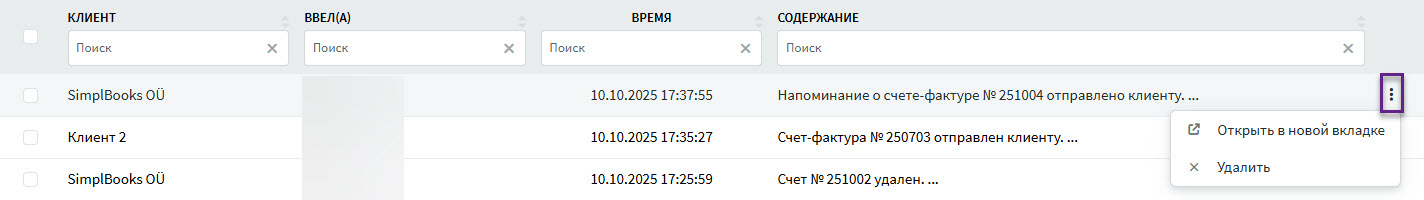 Журнал отправленных счетов продажи, предложений и т. п. система автоматически сохраняет в разделе «Заметки». Их также можно увидеть в карточке клиента/поставщика (Партнеры -> Клиенты и поставщики).